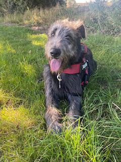 Normally Billie will have already eaten the breakfast but now she is galloping through the room as someone has just entered and she's very excited. Oh my god it's like living with a bull the person says. I know about that Pocket tells us - I've run with the bulls in Pamploma. I was faster than them. Rocket looked impressed. Is that in Spain? He asks - do the Galgos run with them too? Later I see him running round and round the garden as if in training.